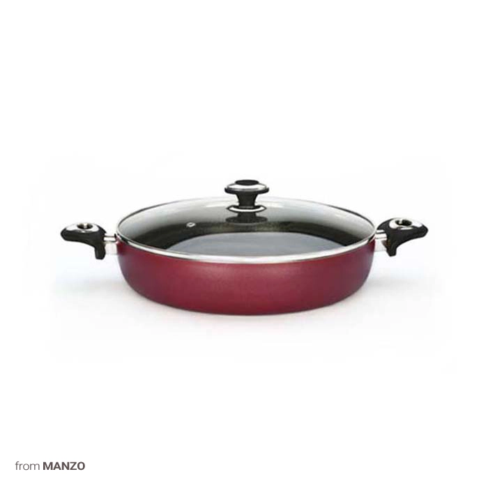 1. تابه دو دسته گرانیتا زرساب قطر 32 سانتی متر، با درب شیشه ای زرساب، امکان مشاهده غذاها در داخل تابه را فراهم می کند.